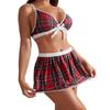 Cosplay Schoolgirl Lingerie Nightdress Student Uniform Bra Sets Sexy Costumes Red Plaid Sexy Outfit Lingerie For Women
