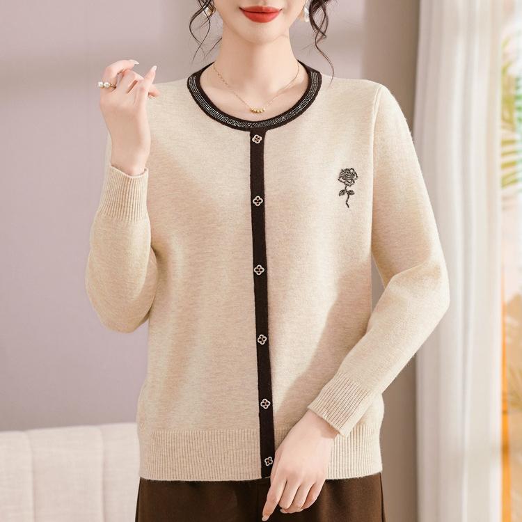 Middle-aged and Elderly Women's Autumn Sweater Sweater Sweater Plus Size Loose Single-breasted Pullover Round Neck Long-sleeved Mother Grandma.