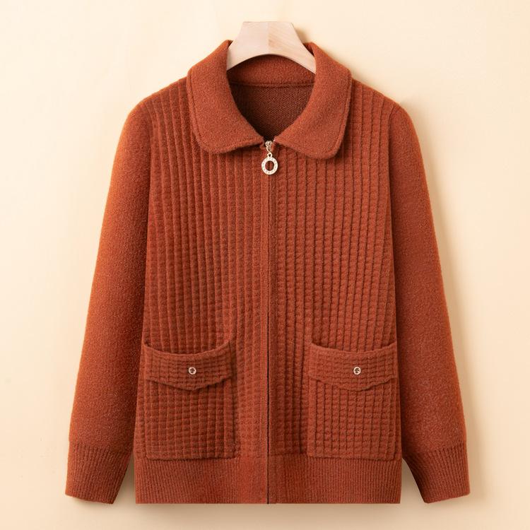 Middle-aged Mother Dressed In Early Spring Sweater Jacket Fashionable Lapel Zipper Cardigan Women's Spring and Autumn New Top