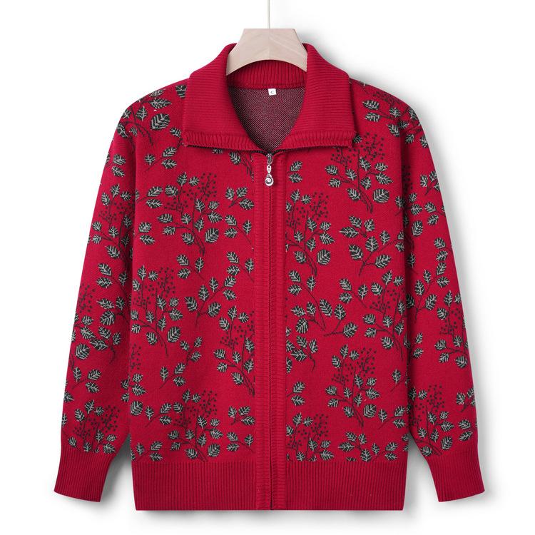 Middle-aged and Elderly Female Grandmother Spring and Autumn Sweater Cardigan 60 Years Old 70 Mother Autumn and Winter Jacket Casual Zipper Top