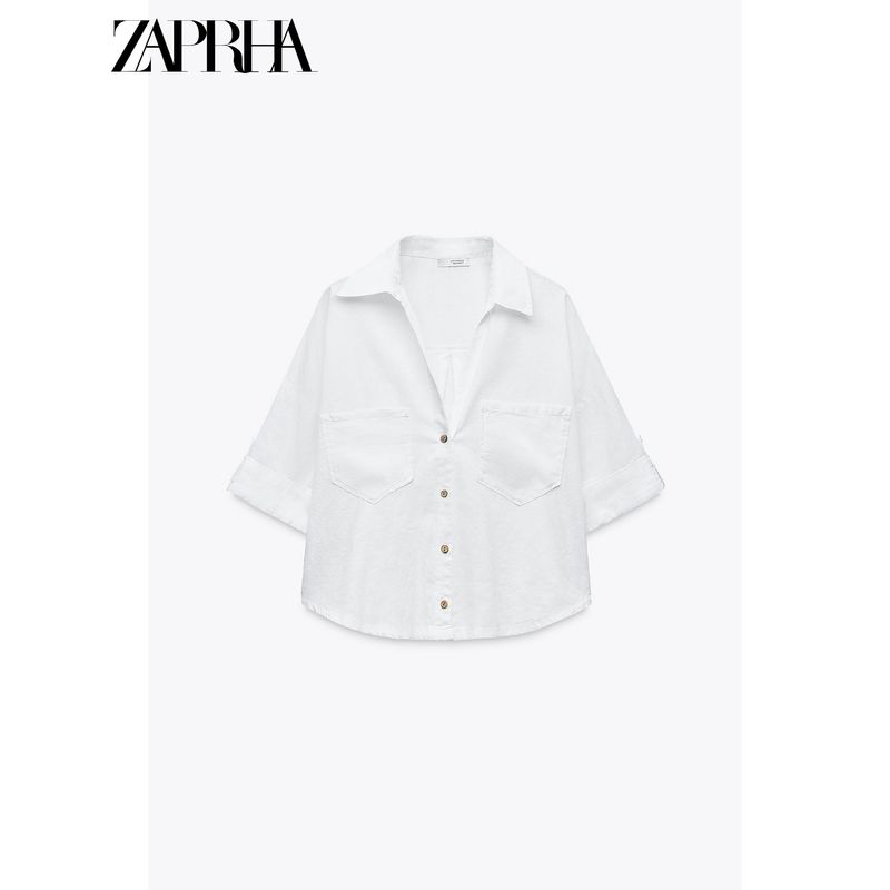 Zaprha 2025 New Arrival French Style Temperament Linen Blended Lapel T-shirt Shory Style Casual Shirt Female 2187813