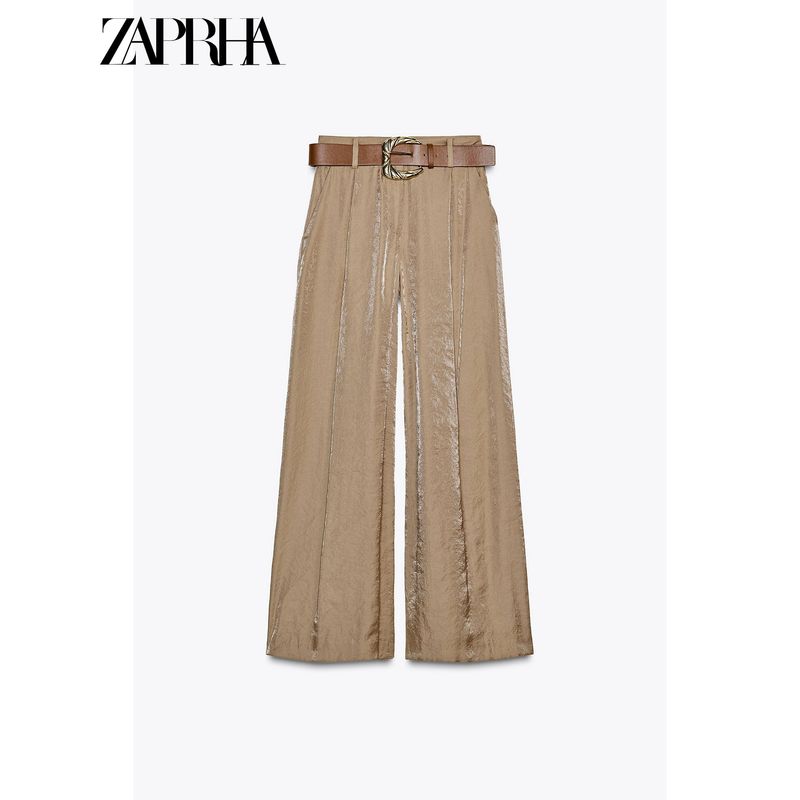 Zaprha 2025 New Arrival Fashion Loose and Idle with Belt Silk Satin Wide Leg Casual Pants for Women 3533556