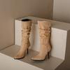 Apricot Black Women Mid Calf Boots High Stiletto Heel Big Size 48