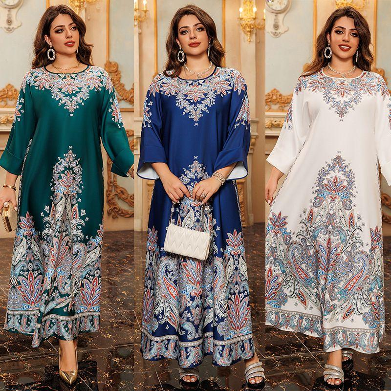 Indonesia Turkey Saudi Arabia Positioning Printed Rhinestones Cross-Border Women's Clothing Dress Djellaba Dress