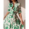 Spring New Fashion Fashion Commuter Ol Single-Breasted Print Waist-Controlled Lace-up Mid-Length Long Sleeves Dress Dress