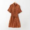 Foreign Trade Export Brand Original Order Fashion Simple Lace-up Waist Hugging Slimming Stand Collar Short sleeve Dress Large Size