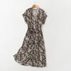 Super Fairy ~ Quality Cabinet Single Fresh Artsy Graceful Printed V-neck Ruched Stylish Short Sleeve Noil Poplin Dress Summer
