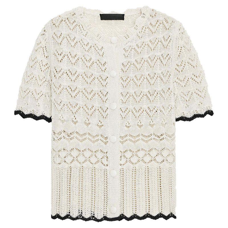 Zaprha 2025 Summer New Sweet Contrast Color Hollow Design round Neck Short sleeve Knit cardigan 6771121
