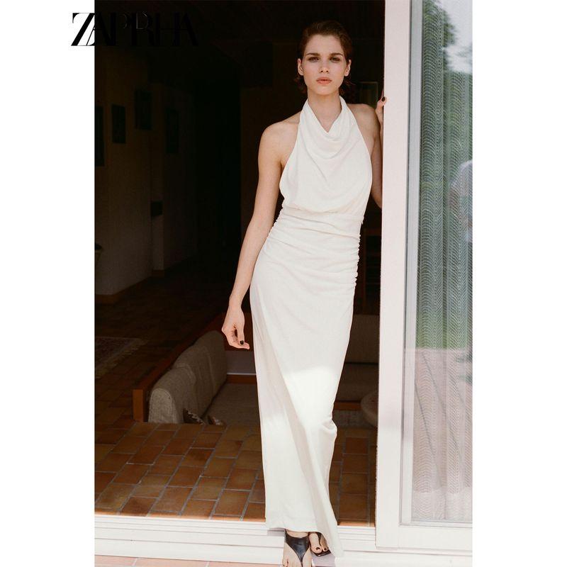 Zaprha 2025 Summer New Fashion Temperament All-Match Backless Neck Collar Slim fit Long Dress 3152312