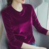 Dámské teplé základní tričko s kulatým výstřihem, sametové tričko, strečové tričko s dlouhým rukávem, dámský elegantní streetový top, módní podzim zima