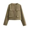 Zkrácená bunda pro ženy Kabát Podzim Zima Crop bunda Tweed Kulatý výstřih Dlouhý rukáv Přechodová bunda Bombera Svrchní oblečení