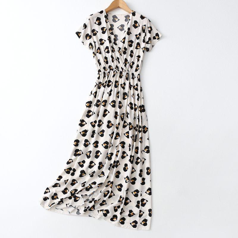Recommend ~ Foreign Trade Original Order Noil Poplin Dress Sweet Printed Elegant V Neck Waist-Tight Artificial Cotton Dress Tea Dress