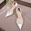 Luxusní perlový řetízek Vysoký podpatek Dámské boty Sexy lodičky Špičaté Stiletta Elegantní šaty Svatby Svatební párty boty Bílé