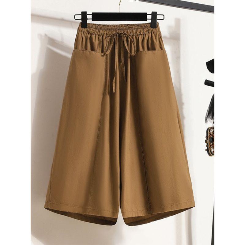 Plus size women clothing Chubby Girl European and American Summer New Elastic High Waist Lace-up Tencel Thin Casual Cropped Wide Leg Culottes