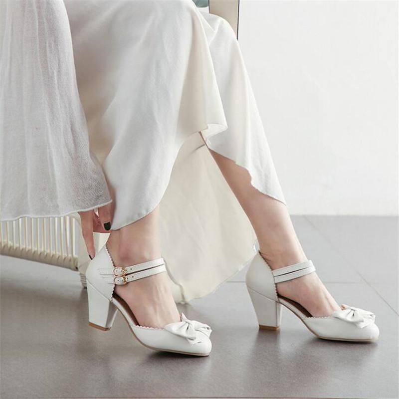 Big Size 32-43 Women Pumps Sweet Bowtie Shoes Sandals Chunky Female High Heels Party Wedding Prom Footwear Girls Shoes