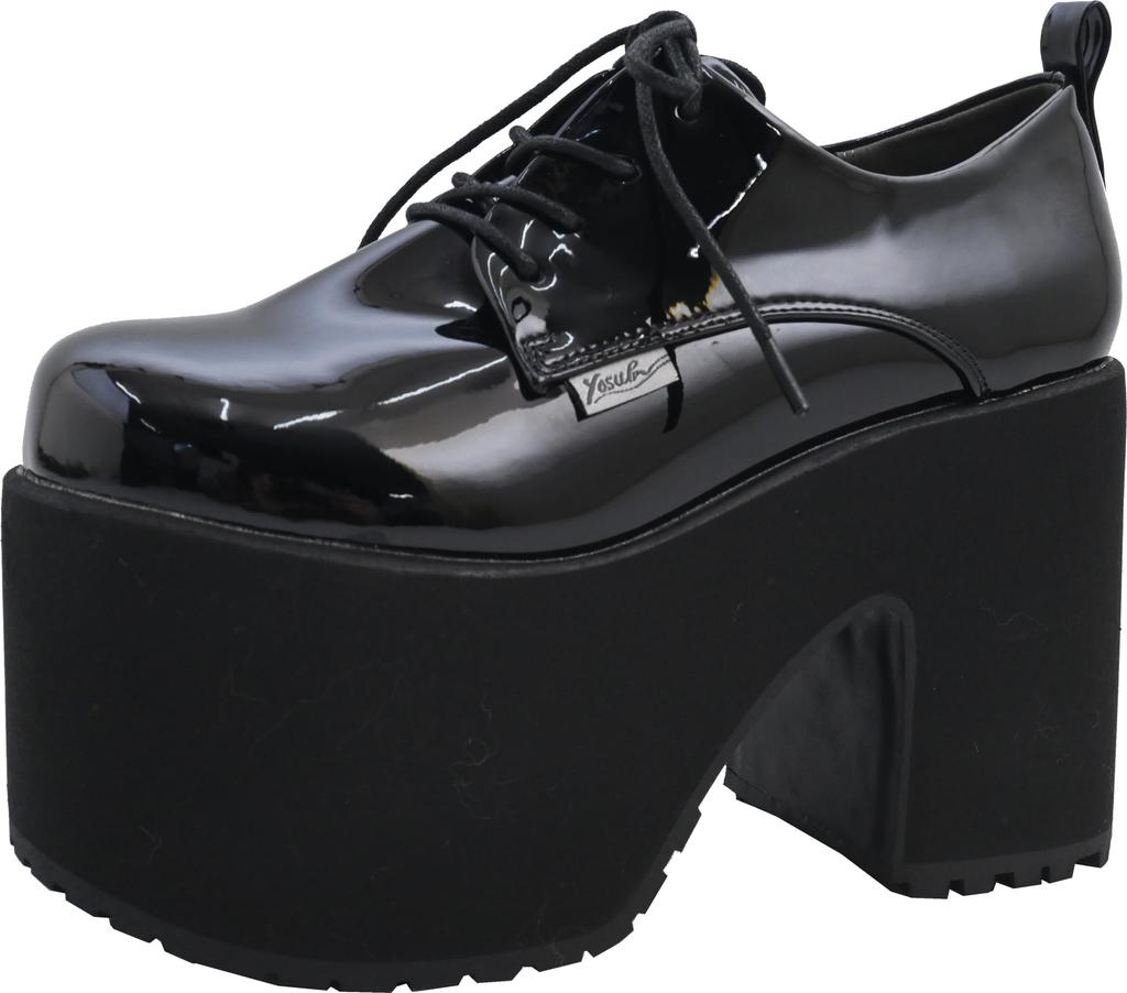 Yosuke Platform Sandals 4460102 Women's Black Enamel, Sizes 24.0cm-24.5cm