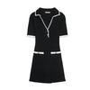 Summer New Product Women's Clothes Contrast Color Trim Short Sleeve V Neck Short Metal Button Rib Dress 4770154