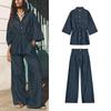 Cotton Pocket Poplin Long Sleeves Shirt 2183064 Mid Waist Poplin Wide Leg Casual Trousers 2183065