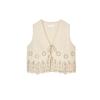Summer Women's Linen Blend Bows Lace-up Cutout Embroidered V-neck Sleeveless Vest Waistcoat 6318044