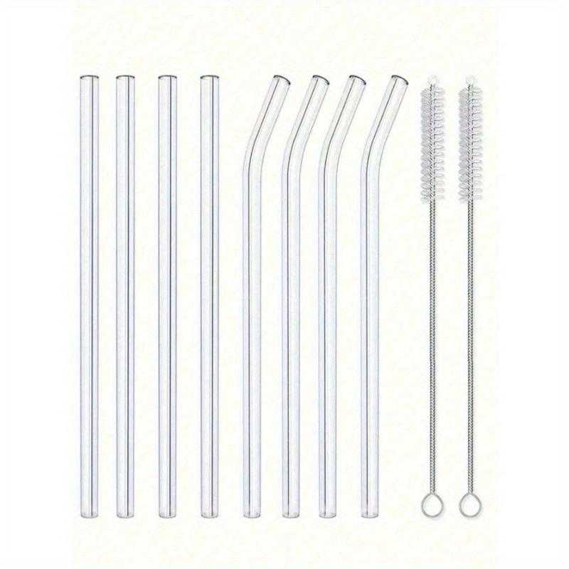 8Pcs Clear Glass Straws With 2 Cleaning Brushes, 8mm Reusable Straws, 4 Straight And 4 Curved Straws, Summer, Summer Sets