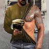 Jarní a podzimní kulatý výstřih Bodybuilding Simulace svalů 3D tištěné Top Módní ležérní pánská trička s dlouhým rukávem