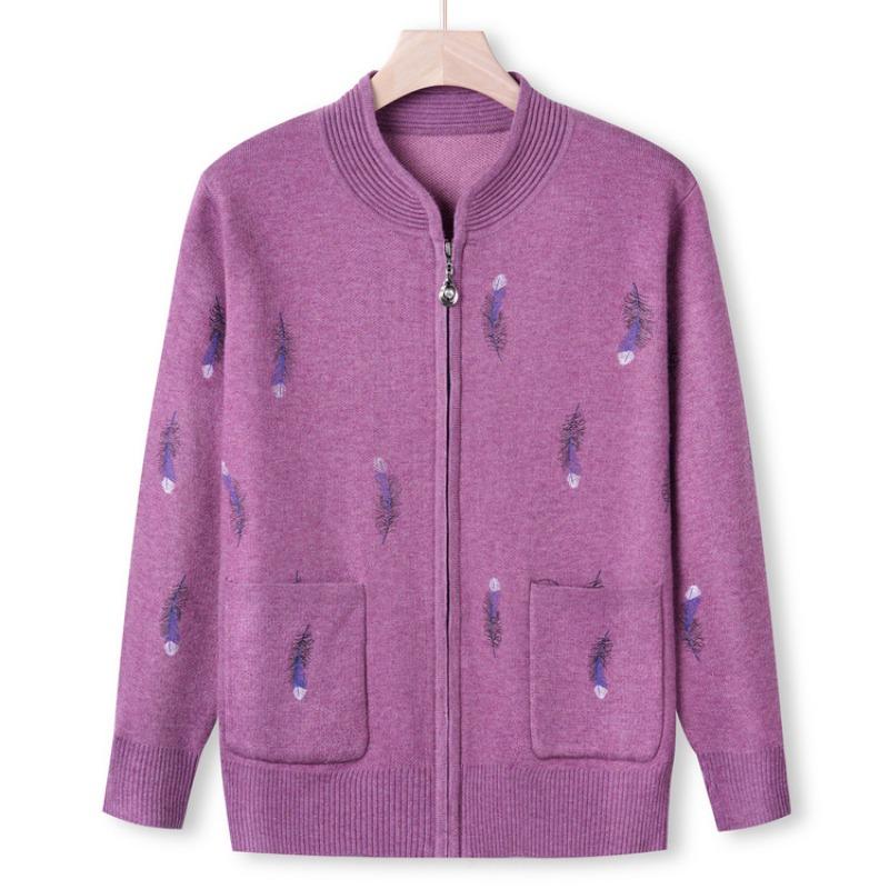 Grandma autumn new knitted sweater jacket middle elderly women's zipper top year old 0 mother autumn sweater
