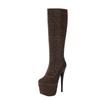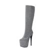 Dámské vysoké kozačky po koleno s třpytkami, sexy klubové boty na platformě na tyč, tenké super vysoké podpatky, flitrované kozačky