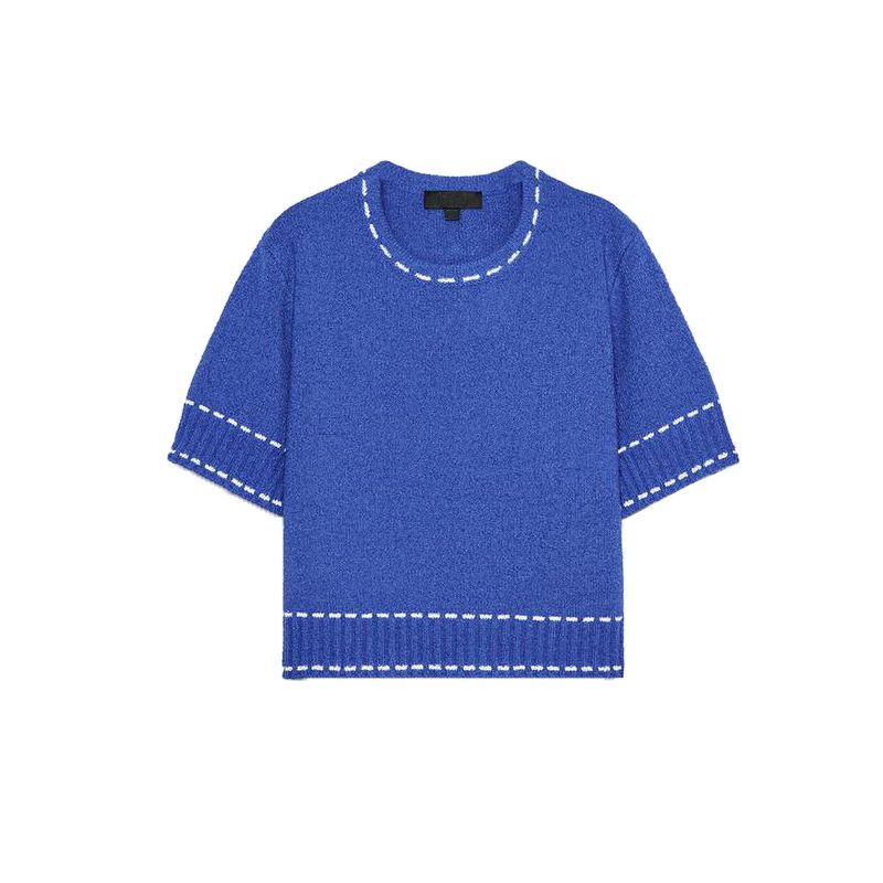 Summer Women's Clothing Contrast Color Thread Decoration Easiest for Match Minimalist Fashion Short Sleeve round Neck Knitwear 3920337