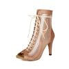 Peep Toe Grainy Sequined Sandals Drag Queen Summer Ankle Boots High Heels Jaz Latin Dance Shoes Patchwork Mesh Bandage Stiletto