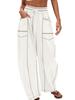 Dámské béžové kalhoty se širokými nohavicemi se stahovací šňůrkou v pase a bočními kapsami