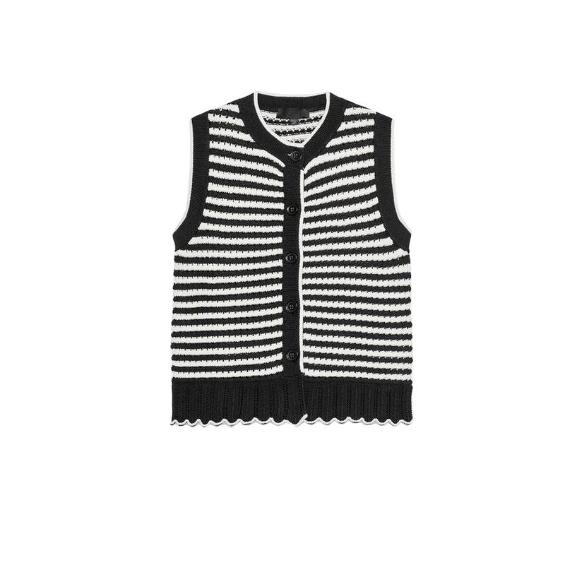 Summer Women's Clothing Minimalist Style Single Row Multi-Buckle Stripes round Neck Sleeveless Knitting Vest Style Tops 4331024