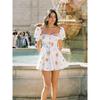 Summer New Product Women's Clothes French Vintage Style Printed Waist-Controlled Slim Looking Lace Patchwork Puff Sleeves Dress Short