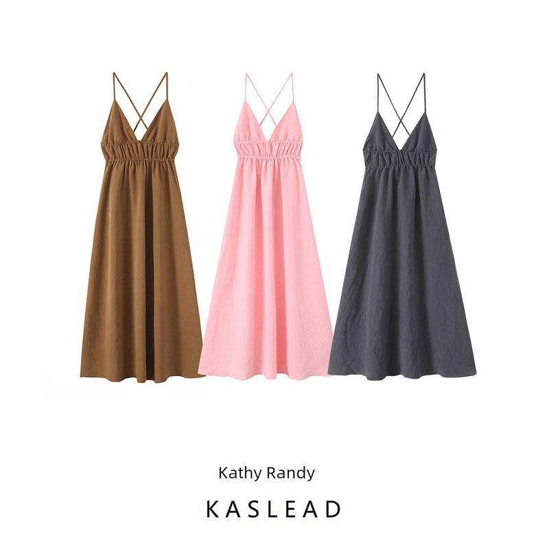 Kaslead New Arrival Women's Clothing Fashion Style Fashion Minimalist Vertical Midi Skirt Dress 3067367