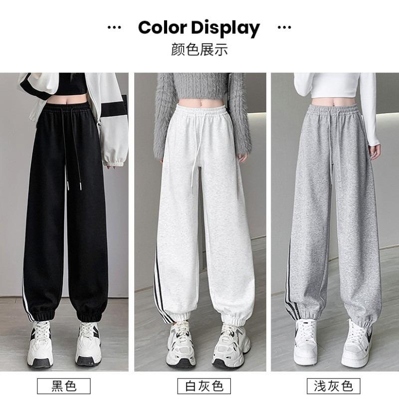 Gray three-bar sweatpants women's spring and autumn new high-waisted and thin Harlan tied feet casual wide-leg sweatpants