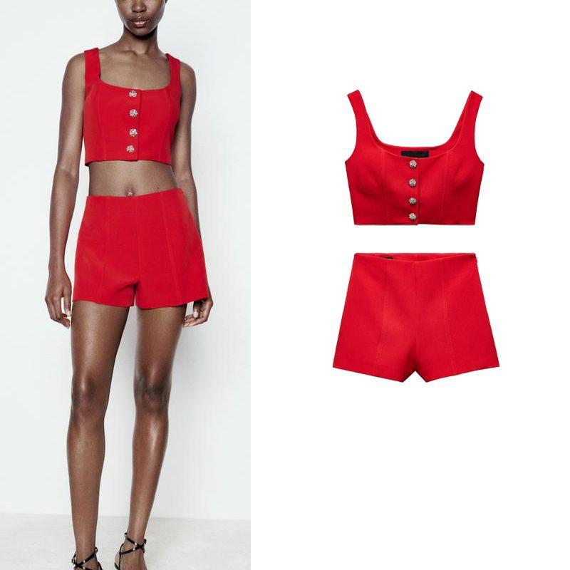 Spring New Arrival High Waist Shorts 8567308 Rhinestone Buttons Decorative Corset Tops 8566308