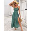 Spring and Summer New Women's Clothing Seaside Vacation Style V Neck Sleeveless Backless High Waist Split Long A- line Dress