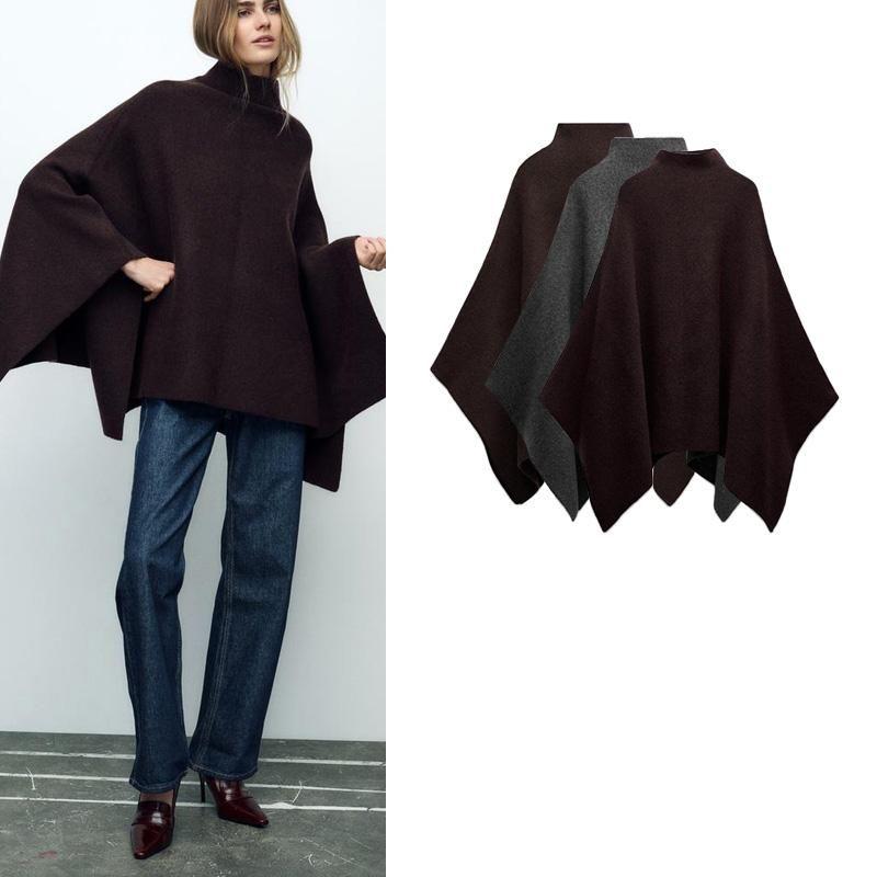 Fall and Winter New Women's Minimalist Retro Blended Fabric Asymmetric Stand Collar Knitting Cape Coat 3739027