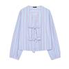 Summer New Product Women's Clothes round Neck Long Sleeves Contrast Color Seized Line Bowknot Decoration Poplin Shirt Tops 0387058