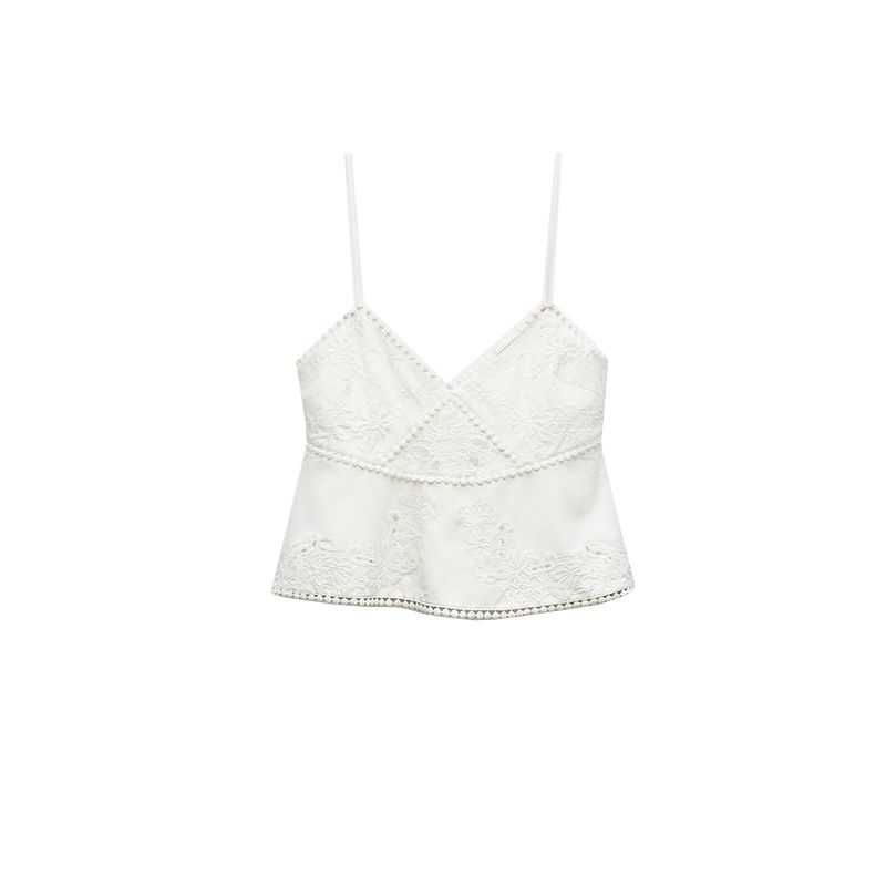 Spring New Women's Casual White Suspender Vest Embroider Poplin Short Tube Top Tops 7200041