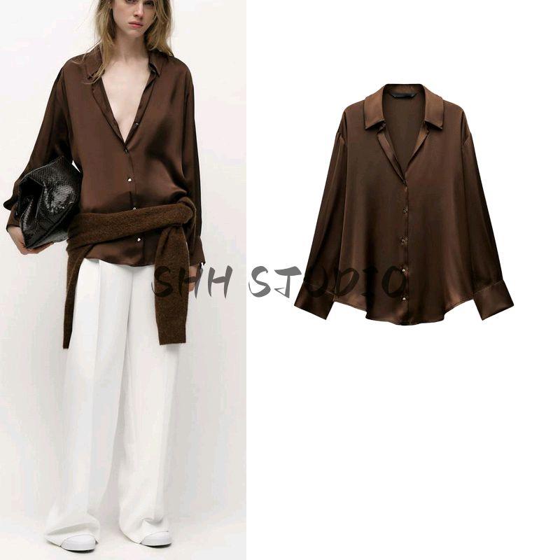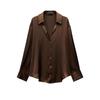 Spring New Women's Clothing Fashion Style Lapel Long Sleeves Single-Breasted Silk Satin Textured Shirt Tops 2074580