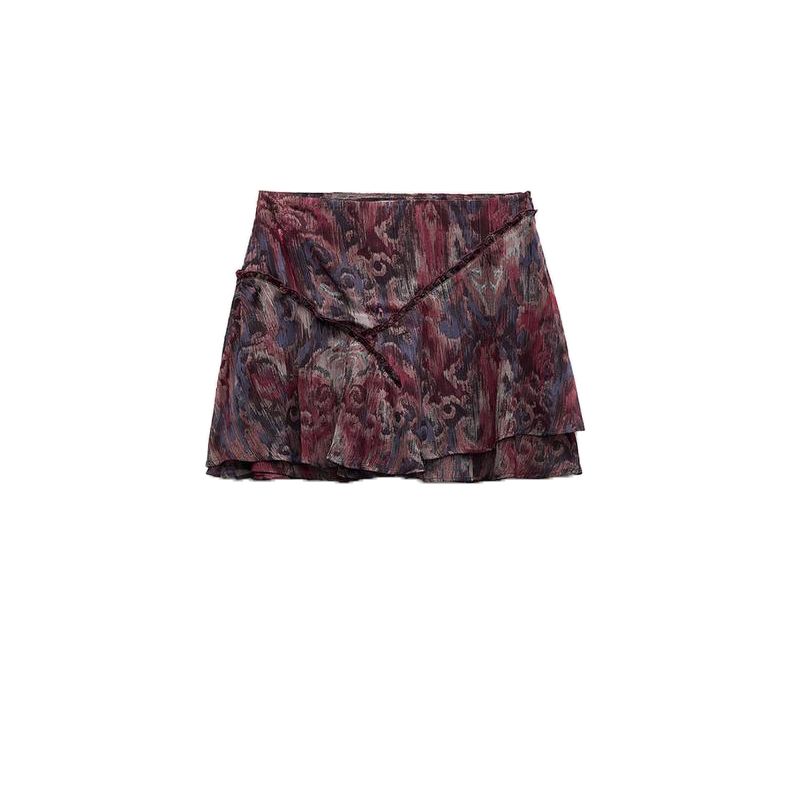 Spring New Women's Clothing Laminated Decoration Metal Color Thread Print High Waist Short Mini Skirt 2267110