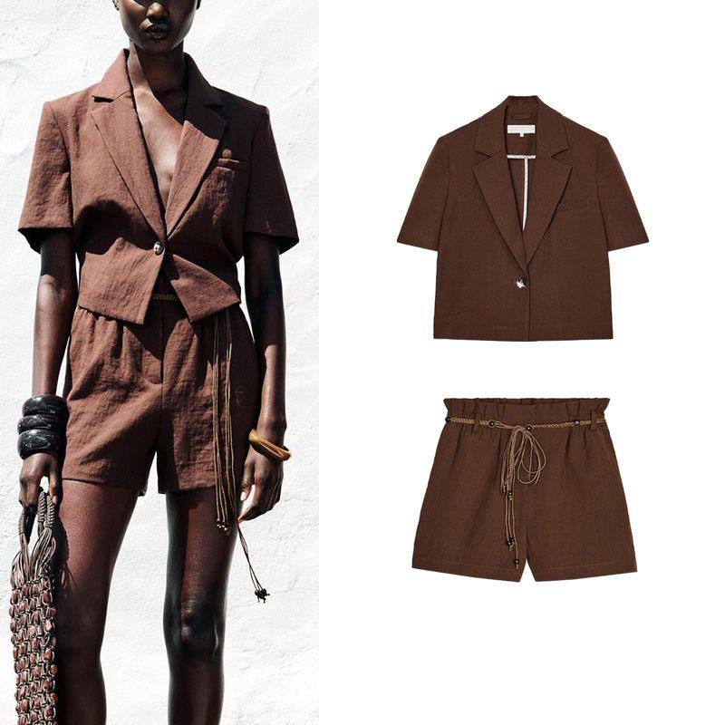 Beaded Belt High Waist Unisex Style Shorts 8073049 Lapel T-shirt Shory Style Suit Outwear 8073149