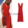 Spring New Women's V-neck Sleeveless Short Red Heart-Shaped Satin Textured Dress 2354331