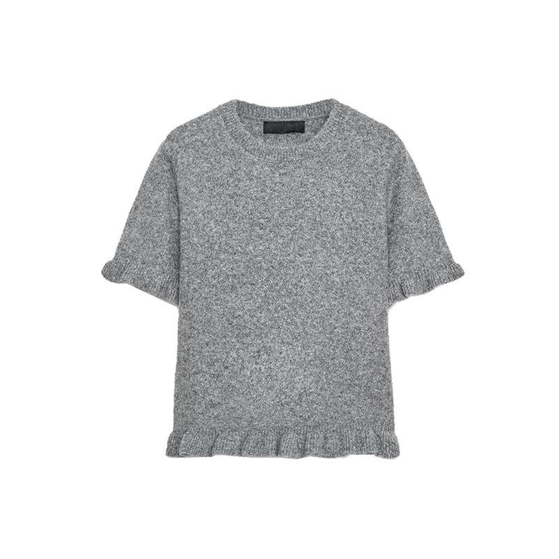 Autumn New Women's Clothing Idle Style round Neck Silm Short Sleeve Laminated Decoration Knitwear 2756130