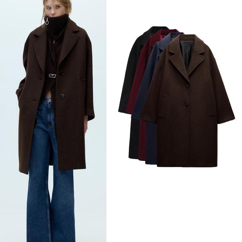 Fall and Winter New Women's Clothing Loose Long Sleeves Lapel Wool Blended Coat Outwear 2052233 2052201
