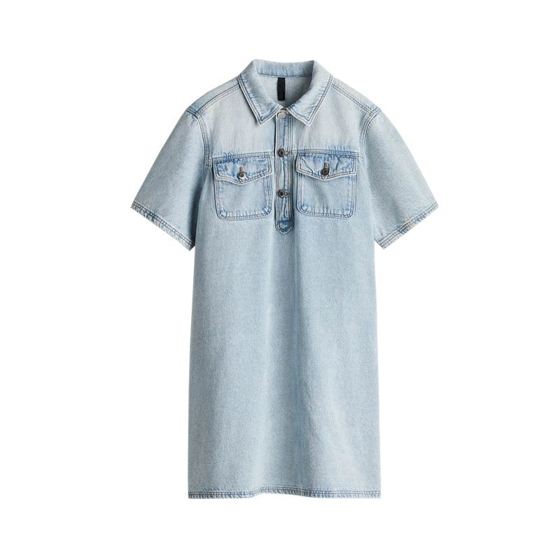 Summer New Women clothes Cotton Blended Fold Collar Short sleeve A Word Shirt Style Demin dress 1274311