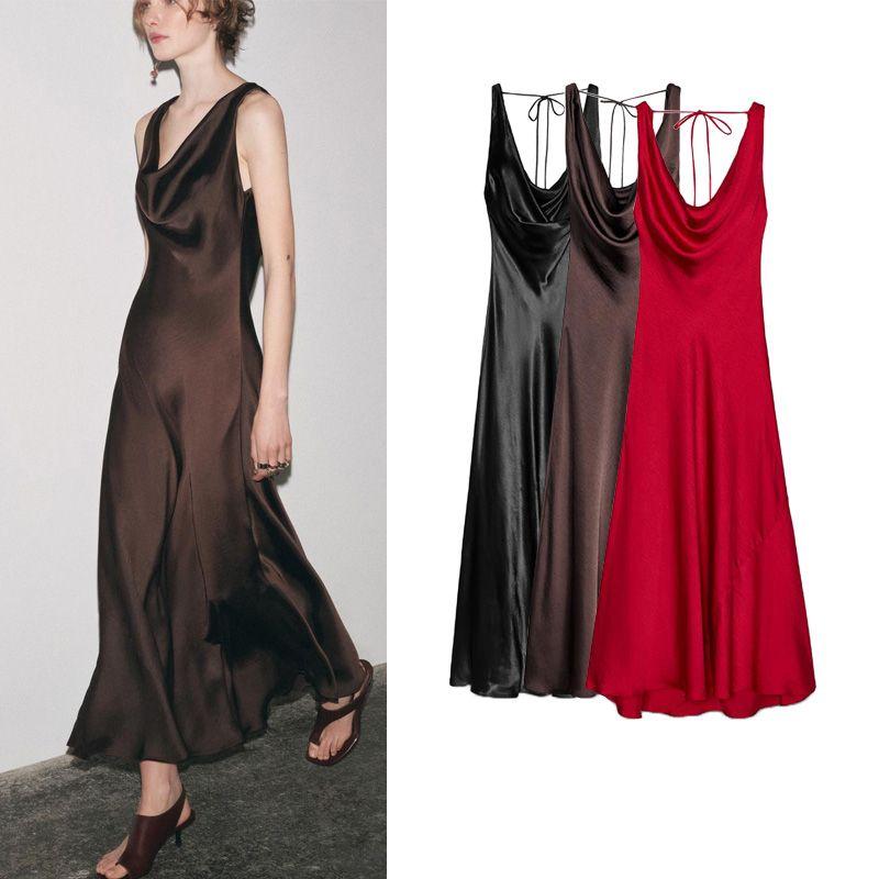 Summer Women's Clothing A- line Asymmetric Hem Silk Satin Texture Long Dress 2590987 2590934