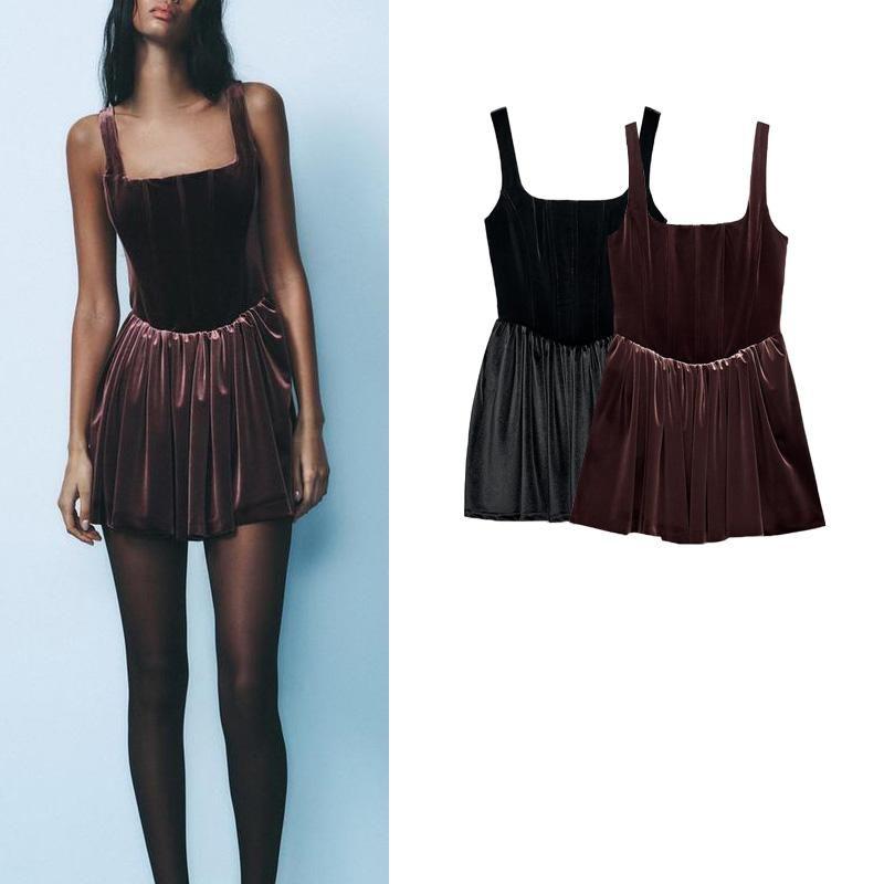 Fall and Winter New Women's Clothing Velvet Ruched Corset Short Dress 4764287 9194072