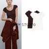 MD Summer New Arrival Women's Clothing American Casual Comfortable Cotton off-Neck Rib Short Sleeve T-shirt Top 6809107