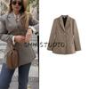 New Fall Women's Clothing Work Clothing Flat Lapel Collar V-neck Single Breasted Linen Blend Casual Suit 1293033